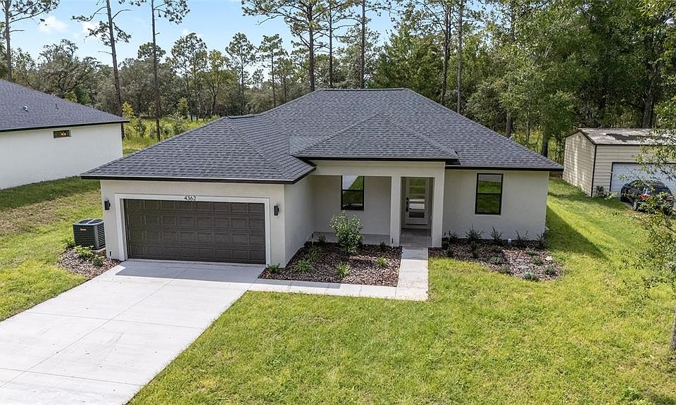 Introducing the Citrus Model by Halona Development Group, a brand-new single-family home located on a 0.24-acre lot in the desirable Rainbow Park community of Ocala. Offering 1,571 sq. ft. of living space under A/C and a total of 2,147 sq. ft. including garage and porches, this residence combines quality craftsmanship with modern design. The Citrus Model features a spacious open floor plan that seamlessly connects the living, dining, and kitchen areas, creating an inviting environment for everyday living and entertaining. With 4 bedrooms and 2 full bathrooms, the home is finished with premium Spanish porcelain tile throughout. The imported kitchen boasts granite countertops and high-quality appliances, offering both style and functionality. Additional highlights include a two-car garage with enclosed parking, a full irrigation system covering the entire lot, and a layout designed for comfort and convenience. Rainbow Park provides a tranquil setting surrounded by nature, while being just minutes from Ocala’s growing city center. Residents enjoy proximity to Gainesville, Orlando, and Tampa, making this location ideal for families, professionals. Whether you’re seeking a modern new residence or a retreat to enjoy Ocala’s equestrian lifestyle, natural springs, and lush landscapes, this property delivers it all. No HOA associated with this property.