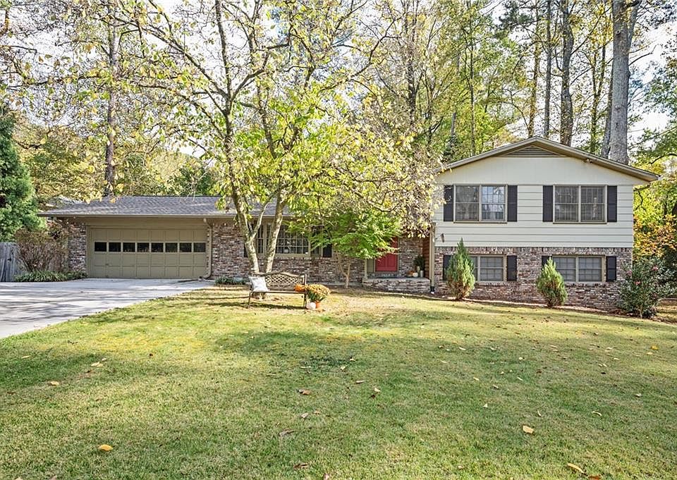 Welcome to this updated 4 Bedroom, 3 Full Bath home nestled on a quite cut de sac lot in Georgetown subdivision in Dunwoody. Entering the home you waik into the spacious main level. The open living, dining and kitchen invites gatherings of family and friends. The kitchen features white cabinets with stone countertops, tiled backsplash, stainless steel appliances and large dining island w/gas cooktop. Step through the glass french doors onto the large deck for your grilling and al fresco dining. Upstairs you will find the primary bedroom and private bath w/shower, two secondary bedrooms, and hall tiled bath w/tub/shower combo. Downstairs is the cozy den w/fireplace, office space, guest bedroom and third full bath w/shower. Outside the den, is a patio and a fire pit which overlook the large fenced portion of the yard w/designated play area and the remainder of the wooded lot. Moving back inside the home you will find a laundry/mud room w/extra storage between the kitchen and garage. The community offers a swim/tennis and community garden within walking distance. If you are feeling adventurous, you can walk or bike over the Nancy Creek bridge and continue on to the restaurants and shops at Perimeter.