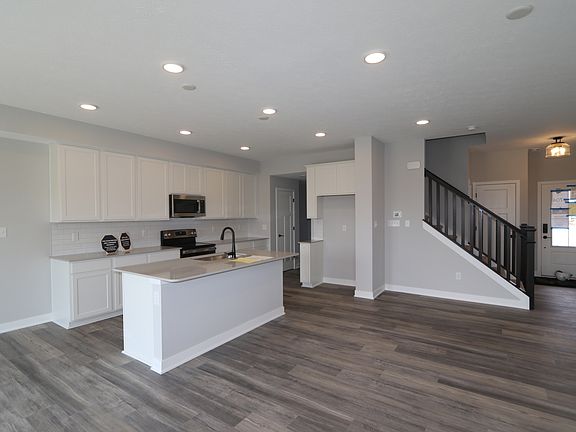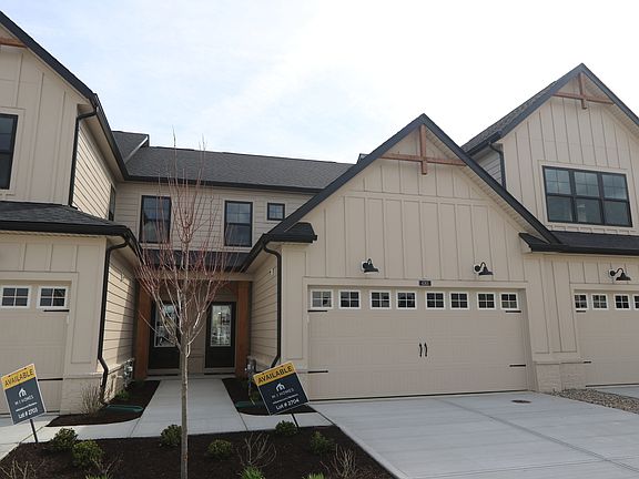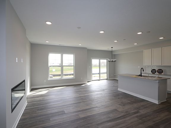 This 2-story, 1,560-square-foot townhome comes with 2 bedrooms, 2.5 bathrooms, brilliant natural lighting, an open-concept kitchen, and beautiful finishes throughout! The white vinyl siding with sleek black accents matches the modern layout you'll love inside! Find a half bathroom and a coat closet just off the foyer, and pass the steps to the second floor as you make your way into the wide-open gathering room and kitchen. With 13'2" x 21'9" of space and an electric fireplace, there are so many ways to transform the gathering room in this townhome to fit your personal design style! You could go with a neutral boho theme or opt for a modern farmhouse look. The kitchen island overlooks the family room, so you can still watch a show on the TV after work while getting dinner ready. You'll have more than enough room to prepare each dish in this well-equipped, on-trend kitchen! Set up a dining table in the breakfast area nearby, where you'll also find the sliding glass doors to your back patio. Head upstairs to find the laundry closet at the top with a full bathroom across from it. The owner's bedroom, bathroom, and walk-in closet are just around the corner. The bedroom next door makes the ideal space for a bright home office or spacious guest room. There's even an attached 2-car garage, so you'll have plenty of room for your vehicles. With an under-the-stairs storage closet and other storage solutions throughout, there's tons of space for your seasonal decorations and other keepsakes.