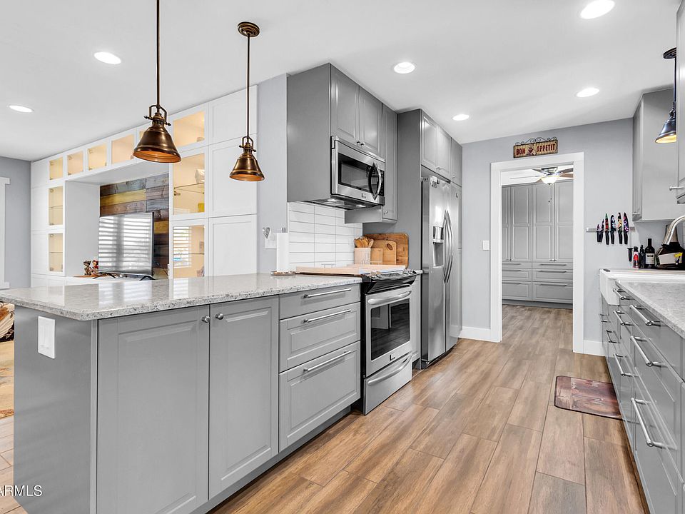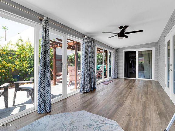 Move right in and enjoy modern comfort in this beautifully upgraded home! Peace of mind with new HVAC and water heater (2023), roof (2022), and owned water softener. This stunning 2-bed, 2-bath home with a den (easily a 3rd bedroom) and cozy fireplace sits on a private cul-de-sac lot. Enjoy 1,426 sq. ft. plus a 225 sq. ft. sunroom for a total of 1,651 sq. ft. of living space. The upgraded kitchen includes an induction stove, convection microwave, stainless dishwasher, 26 cu. ft. refrigerator, and stackable washer/dryer—all included! Quartz counters, 42'' cabinets, and soft-close drawers add style and function. Wood-look tile flows throughout, with plantation shutters in the living room and primary suite. Curtain rods, pergola, and safe all stay!