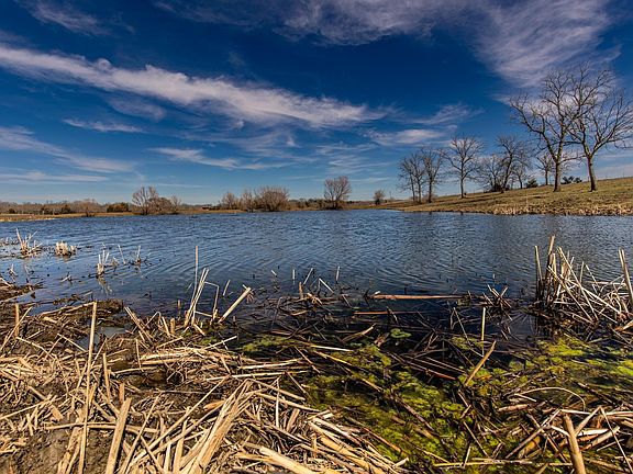 Beautifully rolling Kansas 120 acres on paved road with 7 nice ponds (the largest being a bit over 2 acres!), scattered hardwood timber and a treed creek area make this property the perfect property for about anything! There is a cozy 2 bedroom, 1 bath residence that would make a great weekend home, short term vacation rental property or conventional rental. There is a nice 60 x 40 insulated metal building with a concrete floor, electricity and water along with a vintage barn and a very functional shed. There is approximately 80 acres that is fully fenced and crossed fence which is in average to above average condition along with a nice set of corrals for livestock. The balance of the land is a cool season hay meadow. The property has plenty of habitat for hunting deer and turkeys, too!!! The potential is endless for this property which is located only 40 minutes southwest Olathe, KS. There is an agricultural lease and an oil lease to provide income