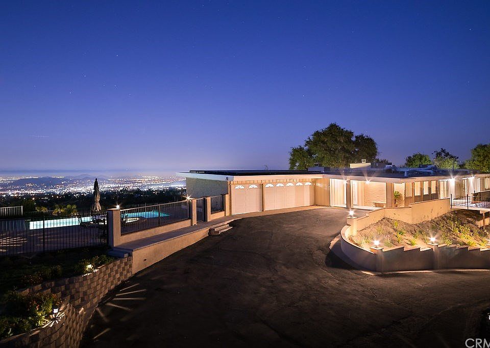 Arguably the BEST VIEW and over 850 feet above Corona City Hall is this Mid Century master piece, a hidden gem with soul. The essence of Hollywood Hills in Corona. The 4 Bedroom, 3 Bathroom SINGLE LEVEL floor plan boasts quality unequaled amongst its contemporaries. It's a one-of-a-kind work of art said to host parties with Dean Martin and The Rat Pack. Located on nearly a ACRE lot on the ridge top of a truly serene setting. Rare combination of spectacular sweeping city light views, Mountain Views, architecture with dominant beamed ceilings. The panoramic "wall of air" captures the hills, city views and warm setting with an abundance of natural light. Two masonry fireplaces, TWO MASTER bedrooms with newly remodeled En Suite's, Walk In Closets, Spa tub and Instant hot water with the new Tankless Water Heater Powered by a PAID In FULL Solar system. Kitchen is complete with Granite Counter Tops, Stainless Steel VIKING appliance, Walk In Pantry and Breakfast bar. Complete PRIVACY beckons those looking for peace and serenity. Entertainers' deck surrounds the property offering 360 degree unobstructed views. Outdoor Living at itâs finest. Paradise where one can relax POOLSIDE next to the infinity waterfall with Jacuzzi. Escape from it all----lose yourself. Epoxy Garage can be the perfect Man Cave, Work Shop with picture windows to enjoy the view from every angle.