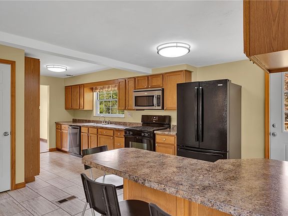 Welcome to this delightful 4-bedroom Ranch, perfectly situated on a spacious half-acre lot and just a stone's throw away from Hampton high school and Community Center. The house boasts gleaming hardwood floors that add a touch of elegance throughout the living spaces. The updated kitchen features sleek countertops and ample storage. Both bathrooms have been beautifully renovated to offer contemporary comfort. The oversized deck provides an ideal spot for outdoor gatherings, overlooking the expansive yard. Inside, the large family room is a cozy haven, complete with a wood burner that creates a warm and inviting ambiance. The finished basement adds even more versatility to this home, offering space for an office, home theater, playroom, or additional storage.