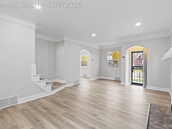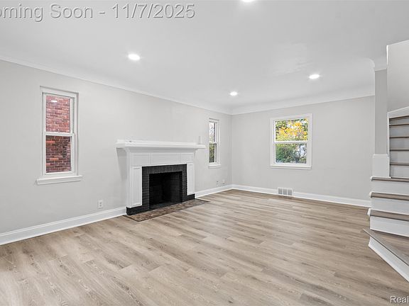 Welcome to this move-in-ready 3-bedroom, 1-bath home featuring modern updates throughout. Step inside to a bright, open living room with recessed lighting, fresh paint, new vinyl flooring, and a classic fireplace as the centerpiece. The arched doorways add charm and flow seamlessly into the dining area and fully updated kitchen—complete with white shaker cabinets, quartz countertops, subway tile backsplash, stainless-steel appliances, and marble-style flooring. Upstairs, you’ll find spacious bedrooms with plenty of natural light. The exterior offers great curb appeal, a private driveway, detached garage, and fenced backyard. Perfect for an owner-occupant or investor looking for a turnkey property in a desirable area near Mack Ave and Alter Rd.