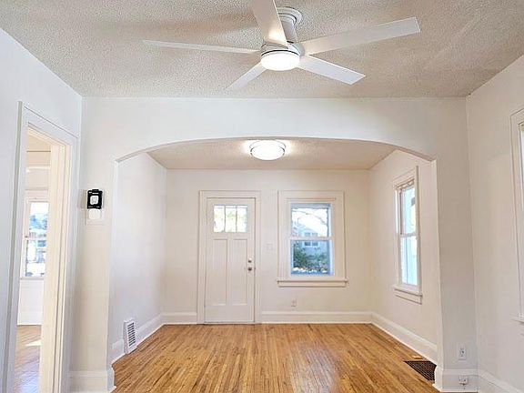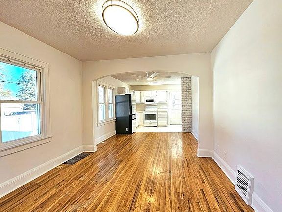 This updated 2-bedroom, 1-bathroom home on a spacious corner lot blends charm with modern convenience. The large yard features new vinyl privacy fencing, fresh concrete, and new sod—perfect for relaxing, entertaining, or pets. Inside, original hardwood floors add warmth, while the upgraded kitchen boasts high-end appliances and stylish finishes. Both bedrooms are bright and inviting, and the refreshed bathroom has a clean, modern look. The unfinished basement offers ample storage, laundry, and potential for future projects. A detached two-car garage, newer roof, and siding ensure low-maintenance living. Conveniently located near parks, schools, trails, and shops with easy highway access, this home provides a peaceful retreat without sacrificing convenience. Ideal for first-time buyers or anyone seeking a move-in-ready home full of charm!