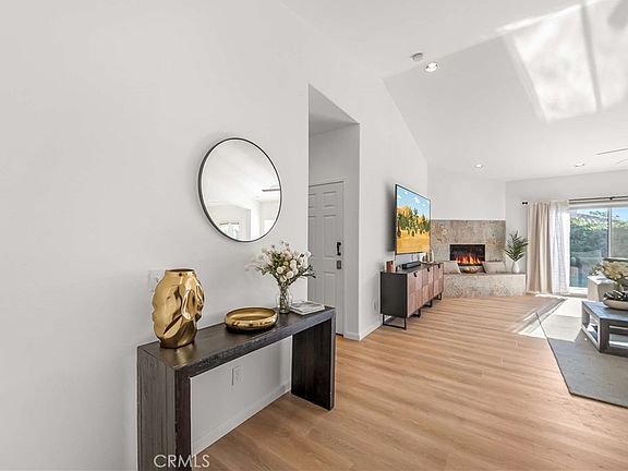 Step through double entry doors into an open-concept great room with soaring ceilings, recessed lighting, and a welcoming living area. The remodeled kitchen boasts a large island, quartz countertops, modern appliances, and both a breakfast bar and formal dining area.