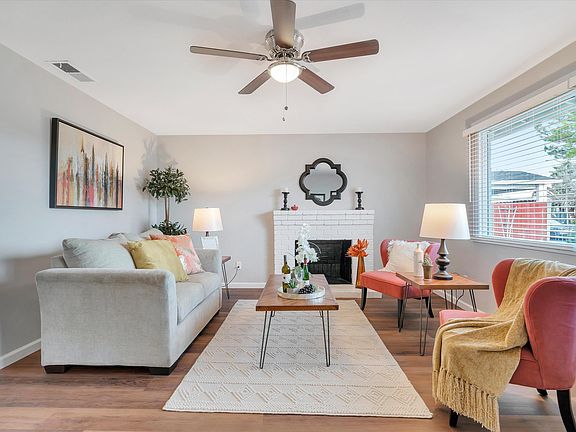 Beautifully updated single-story home in desirable Springtown neighborhood! This 3 bedroom 2 bathroom home offers a modern floorplan with a spacious formal living room with fireplace, a dining area and a cozy family room open to the kitchen. Kitchen upgrades include a breakfast bar, new cabinetry, quartz countertops, new gas stove, new dishwasher, stainless-steel sink, recessed lighting. The front entry door was upgraded with side panel window to allow more light. Master bathroom includes stall shower with tile surround and upgraded vanity. Upgraded hall bathroom offers new vanity sink, flooring and bathtub surround. Other fine features include new luxury vinyl flooring in main living areas, wall-to-wall carpeting in all three bedrooms, upgraded air conditioning and forced air heating, fresh paint, upgraded baseboards throughout, raised panel, interior doors with upgraded hardware, upgraded electrical outlets, and switches, ceiling fans and new mini blinds in all three bedrooms, upgraded lighting in entryway, family room, living room and eating area, dual pane patio door. This property is close to schools, shopping, restaurants, playground and Livermore's finest wineries, brewerys, walking trails, freeway, ACE Train and so much more.