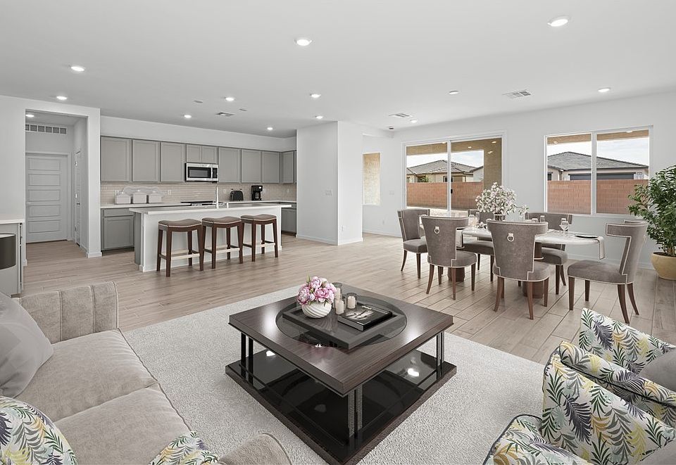 New Construction – Ready Now! Built by America's Most Trusted Homebuilder. Welcome to the Primrose at 4365 E Brusca Way in Ovation at Mountain Falls. Located in the award-winning 55+ community of Ovation at Mountain Falls, the Primrose floor plan offers 1,784 sq. ft. with 3 bedrooms, 2 bathrooms, and a 2-car garage. Enjoy a spacious covered patio with direct access to the open-concept kitchen, dining, and living areas — perfect for entertaining. The split layout provides a private primary suite, with guest rooms and a full bath in a separate wing. Just an hour from Las Vegas, this scenic community features resort-style amenities, a private clubhouse, and the beautiful Mountain Falls Golf Course. Additional highlights include: Door at primary bedroom to laundry room, super shower in primary bath.