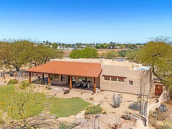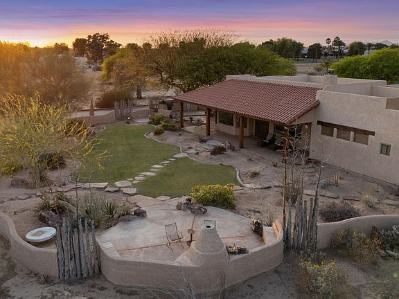 Welcome to this charming 2,445 sq. ft. home nestled on a sprawling 2.31 acre property, offering a tranquil retreat for both relaxation and entertainment. This thoughtfully designed residence features 3 spacious bedrooms and 2 beautifully appointed bathrooms. The open-concept living, dining, and kitchen areas are all adorned with exquisite tiled flooring, creating a seamless flow throughout. The living room boasts a custom-built entertainment center, ideal for hosting guests or unwinding with family. The gourmet kitchen is a chef’s dream, complete with a breakfast bar, a central island, solid surface countertops, and an abundance of cabinetry, perfect for both meal prep and storage. Beyond the home, the expansive grounds feature a guest house, stalls, and an arena, providing endless opportunities for leisure and outdoor activities. Enjoy the serenity of this remarkable property as you gather with loved ones around the Kiva, cooking al fresco or watching your magnificent horses roam the land. With its exceptional amenities and idyllic setting, this home offers a unique lifestyle full of comfort and peace. We invite you to come experience this one-of-a-kind property.