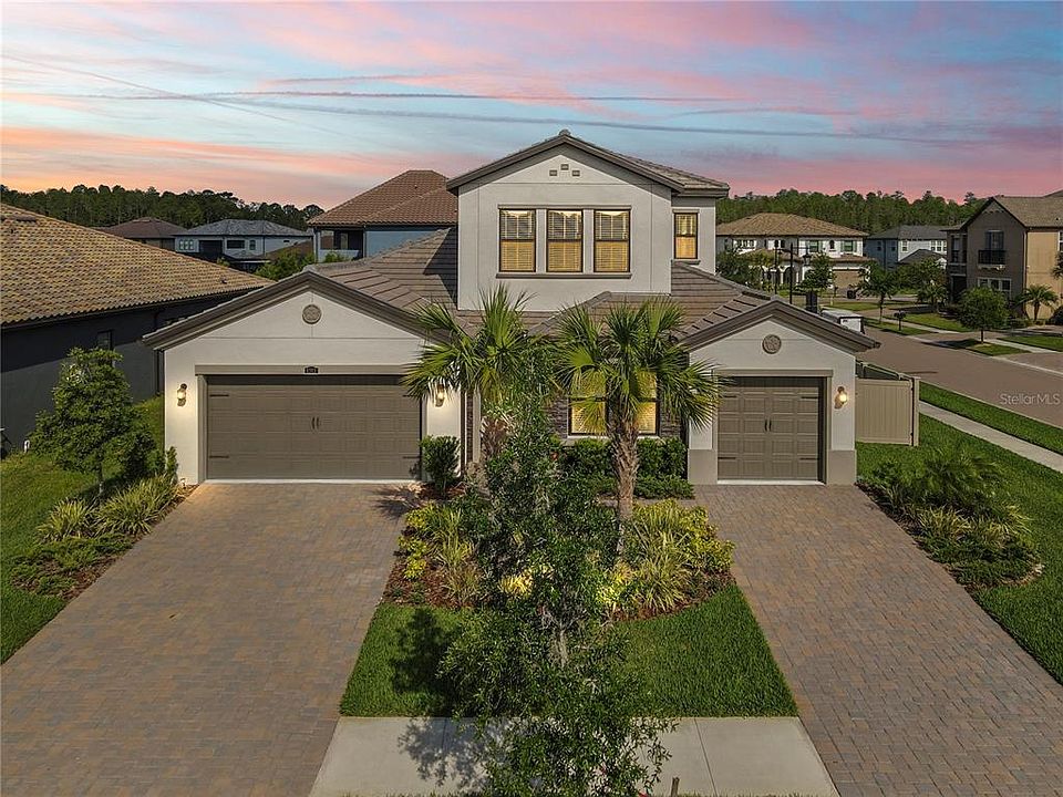 Don’t miss this beautifully upgraded 4-bedroom, 3.5-bathroom Modesto model by WCI Homes, built in 2022 and located in the gated Estancia at Wiregrass community—one of Wesley Chapel’s most desirable neighborhoods and zoned for top-rated schools. This elegant home offers over 3,250 square feet of open-concept living space with ceramic tile floors throughout, a split 3-car garage, and all bedrooms located on the main floor, including a private in-law suite with its own en-suite bathroom. The gourmet kitchen is a chef’s dream, featuring quartz countertops, a porcelain farmhouse sink, stainless steel appliances, double ovens, a gas cooktop with a chimney hood, walk-in pantry, and new designer lighting. The luxurious primary suite includes private access to the lanai, dual vanities, a freestanding soaking tub, a frameless walk-in shower, and a large walk-in closet. A spacious upstairs loft with a half bath offers flexible space for a media room, home office, or playroom. Additional upgrades include new ceiling fans in all bedrooms, the loft, office, and lanai. Enjoy outdoor living with a motorized screened lanai, fenced backyard, tile roof, and paver driveway. Located on the hospital power grid and just five minutes from three major hospitals, this home is ideal for medical professionals. Estancia’s resort-style amenities include a clubhouse, fitness center, zero-entry pool with waterslide, lap pool, tennis and basketball courts, playground, dog park, and walking trails. You’re minutes from I-75, Wiregrass Mall, Tampa Premium Outlets, RADD Sports campus, and top local dining and entertainment. This move-in-ready home combines luxury, location, and lifestyle—schedule your private tour today.