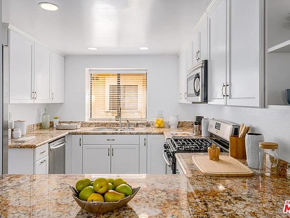 Located in a quiet tree lined cul-de-sac, this spacious 2-story townhome is perfect for your most discerning buyer & seconds away from the Culver Blvd bike path. Entertainers will love the remodeled kitchen w/ granite countertops, stainless steel appliances, breakfast bar, all new cabinets with ample cabinet space. Huge light & bright living room w/ bamboo floors, recessed lights, crown molding, & baseboards. Step through sliding glass doors & relax on your front facing balcony which is perfect for al fresco dining. A classic brick fireplace, office nook & powder room complete the first level. The master suite & guest bedroom are large & complete w/ensuite baths, ample closet space. Recent upgrades include refinished floor, new kitchen cabinets and all bathrooms updated. Additional features include central heat and air, 2 parking spots, elevator, additional storage, & full sized washer and dryer in unit. HOAs includes EQ insurance, secured garage, relaxing pool, & soothing spa. Exceptional value! Come enjoy all that Villa Margarita has to offer!