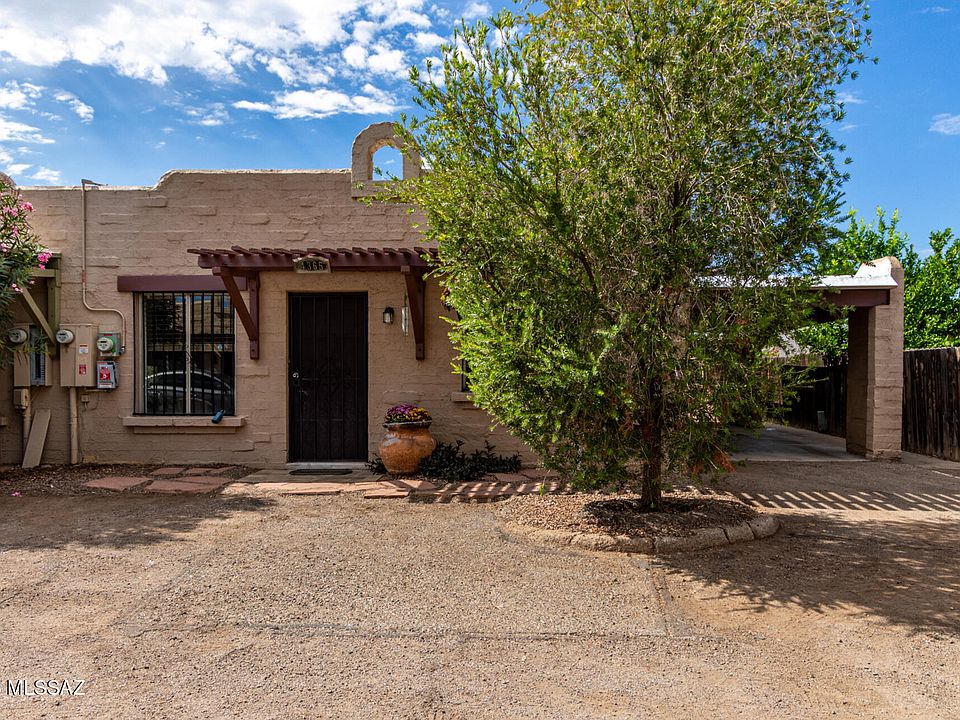 This end-unit 2-bedroom townhome offers the perfect blend of comfort, style, and energy efficiency! Enjoy a bright living room with high ceilings, tile flooring, and a cozy fireplace. The eat-in kitchen features tile counters, stainless steel appliances, and ample cabinetry. Both bedrooms are spacious and inviting, ideal for restful nights. The private backyard includes a covered patio and storage shed, while the community offers a refreshing pool. Energy-efficient leased solar with a fixed $56/month payment locked for the life of the lease. Recent updates include a three-year-old HVAC, a newly coated roof, and a new water heater for added peace of mind. This value won't disappoint!