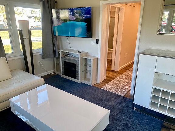 House is split into duplex with separate AC controls but shared laundry room. Corner lot with private driveway and front door off Jamajo blvd. Bedroom has a Queen mattress, large dresser, closet, and large mirror. Kitchenette has a full sized refrigerator, pantry, sink, and cabinets. Toaster oven and Portable 2 burner induction plate are provided. Family room has large L-couch, coffee table, TV, and bar cart.