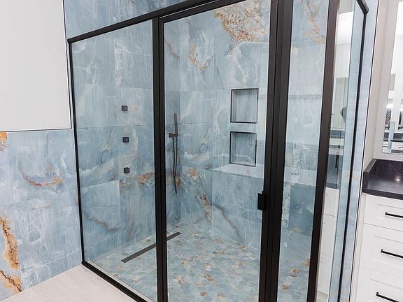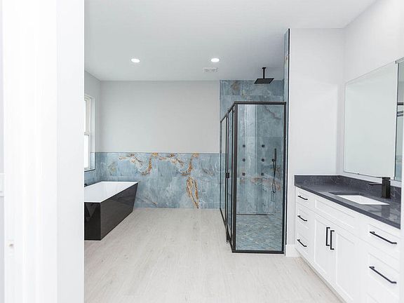 Quartz countertopsSpa-styled bathOpen layoutSpacious covered porchStand-alone soaking tubCorner lotWaterfall shower