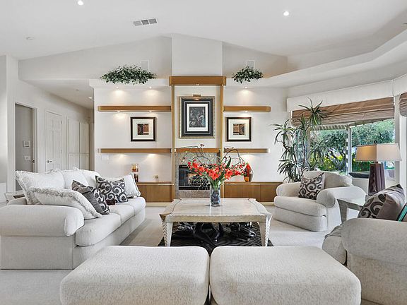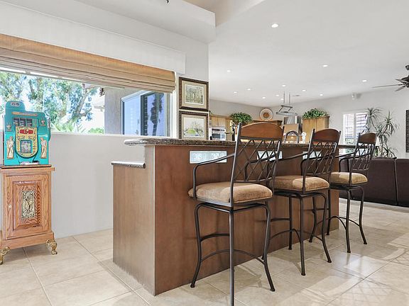 Beautifully appointed home on an elevated 15,246 sq. ft. lot overlooking the 3rd Fairway & mountains on the Eisenhower Nine in Bermuda Dunes Country Club .. Home is 3882 square feet per the Seller with three ensuite bedrooms and a convenient office with custom built-ins, a fireplace and views over the sparkling saline pool/spa to the golf course. The Texas-sized primary suite has his & hers closets and water closets (hers with bidet)... True GREAT ROOM wherein the living/dining area with a sit down wet bar complete with GE Monogram wine cooler & U-Line icemaker is open to the gourmet kitchen and family room. Terrific area for entertaining!! Chef's kitchen boasts an 8 burner Wolf stove, a warming drawer, plus another GE Monogram wine cooler, as well as a Sub Zero fridge and convenient sit down bar for casual dining. There is also a built-in professional wine locker which is temperature controlled. Plenty of room for al fresco dining on the spacious outdoor covered patio with built-in BBQ overlooking the pool and mountains. Three-car garage with tons of storage is air conditioned. IID for lower electric plus both A/C systems replaced with heat pumps in May, 2023. HOA of $214 a month includes cable TV with 2 boxes with Cinemax, Showtime, HBO plus internet with Spectrum PLUS 24-hour security. I I D for lower electric.