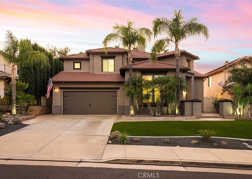 One of the more beautiful homes in Temecula, this 4-bedroom, 3-bathroom home has it all! Boasting fresh designer paint inside and out, this home absolutely "WOW'S" you upon entry with its high-soaring ceilings, new luxury vinyl plank flooring, a spacious living room, and a separate family room that opens to the kitchen, where you'll find new stainless steel appliances and a breakfast dining area. There is a separate large dining room for hosting gatherings, and a luxurious primary suite to retreat to and escape it all. Rarely improved this nicely, the 3-car garage is absolutely pristine, with a high-end custom floor finish, a new garage door, a built-in work bench, excellent lighting, and tons of storage space. The backyard is the perfect size for entertaining yet still low-maintenance, featuring a fire pit, a large covered patio for gathering, dining, BBQ'ing, or just relaxing in the hot tub while basking in the SoCal sunset and privacy provided by the lush tropical landscape and new vinyl fencing. Available as a complete turnkey package, many of the home furnishings are available for purchase separately. Ideally located close to Temecula’s best amenities, such as top-rated schools, parks, golf courses, wine country, shopping, dining, and more! As part of Paseo Del Sol, residents enjoy sprawling greenbelts, miles of walking paths, multiple swimming pools, tennis courts, basketball courts, and neighborhood parks. It’s a community designed for an active, convenient, and connected lifestyle. You won't want to miss this one!