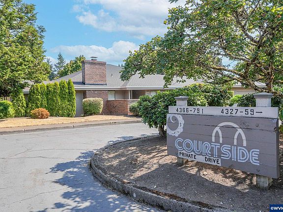 Great south Salem location in the private Courtside community. This 2 bedroom, 2 bath home features an open floor plan with lots of natural light. The large den could be used as a 3rd bedroom. Vaulted ceilings in the living room and gas fireplace. Primary bedroom features walk in closet and ensuite. Exterior paint, siding and interior paint completed in 2025. 2 car garage.
