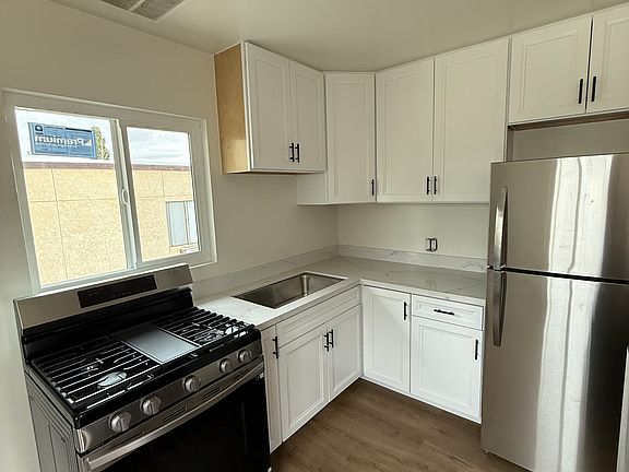 This bottom floor unit was freshly remodeled this year! Live in a totally renovated 2br/1ba apartment. New floors, new plumbing, new bathroom, total kitchen replacements, brand new appliances, in-unit washer/dryer and more! Apartment building sits on the backside of a quiet lot with shared patio area, 1 spot on-site gated parking, and dedicated pedestrian entrances to additional street parking. High-end Samsung combo washer/dryer - start a wash load before bedtime and wake up to a clean, dry load of laundry.