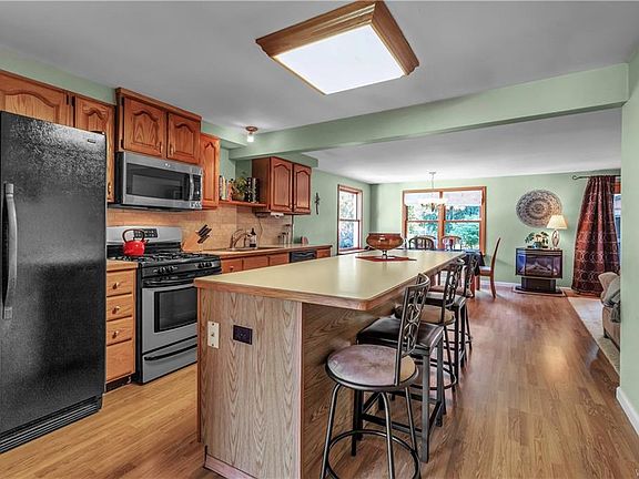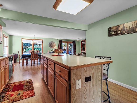 Absolutely amazing opportunity to own this incredibly well maintained 3 bed/2 full bath ranch with attached garage on a quiet, no-outlet street in Clarence. This home's thoughtful, open floor plan features a kitchen with oak cabinets, a reach-in pantry, center island and a seamless transition into the formal dining room and family room. The spacious master bed boasts an attached, private en suite with updated flooring and vanity. Hardwood floors can be found in the other beds and living room. The picturesque backyard boasts a patio, fire pit and an unbelievable bar inside the oversized shed. Enjoy the convenience of first-floor laundry. Relax or entertain in your stunning backyard. Take comfort in knowing you have a tear-off architectural shingle roof, newer hot water heater, a high efficiency furnace, central air, and many of the windows have been replaced. This solid, beautifully landscaped and loved home with a double-wide concrete driveway is a dream come true with a price that cannot be beat! Do not wait!