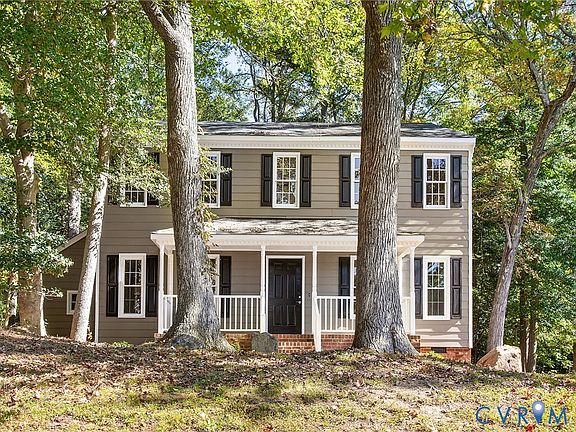 Welcome to Creekwood! This beautifully updated two-story colonial is perfect for entertaining during the holidays and beyond. The home boasts a charming great room featuring a wood-burning fireplace with a raised brick hearth & custom mantel, ceiling fan and double doors leading to the bright Florida Room, which opens to the deck with all new decking boards—ideal for hosting family and friends both indoors and outdoors. The first floor also features a formal dining room, an eat-in kitchen with a breakfast nook and bay window, and a convenient powder room. Upstairs, you'll find three spacious bedrooms, including a primary suite with full bath, ceiling fan and multiple closets, two additional bedrooms, and a full bathroom with utility closet. The home has been freshly painted inside and out, with new LVP flooring on the first floor and brand-new carpet upstairs. With its neutral decor and abundant natural light, the house feels warm and inviting. All appliances are included. Creekwood is a vibrant community with amenities to include a pool, tennis courts, playground, and clubhouse. The neighborhood is conveniently located near Chippenham, Hull Street, Courthouse Road, and Route 288 for easy commuting around RVA. This gem is truly a wonderful place to call home.