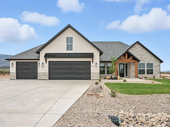 Brand new custom high end home in 4b ranch on almost an acre. Amazing unobstructed mountain views out the back toward Shurtz canyon. 5 bedroom, 3 full bathrooms. Bosch professional appliances with fridge. Custom hand stained light oak cabinetry. Stone accent walls in entryway and dining area. Large white oak trimmed mirrors in all bathrooms. Master suite with custom oak hutch and master bathroom with free standing soaking tub. Tastefully added ship lap throughout add a cozy touch. Oversized laundry/ mud room with extra storage room. You'll love the living room with coffered ceilings and crown molding and built in glass cabinets. 2 pantries. Bonus room/ suite with private bathroom over the garage. Oversized 3 car garage with finished epoxy floors.