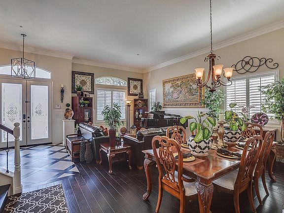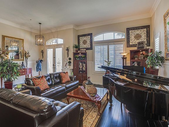 Nestled safely in the gated community of Riverside, this luxurious home with its 2 story - 5 bedrooms and 4 1/2 baths is ready for its new owners. The floor plan graciously accommodates both formal and casual living. With 4,252 sq ft of space you will happily find large bedrooms, including a grand fireplace-warmed master upstairs and a guest bedroom with bath downstairs. The gourmet kitchen which boasts of spectacular stainless steel appliances and gorgeous granite counter tops is perfect for entertaining guests. Or, you could just unwind and experience what's its like living in a resort with your patio that comes with a salt water pool complete with a built in slide, a beautiful waterfall and a BBQ grill. Live with your wholly owned, energy sufficient solar power system. Located near schools, parks and a shopping district, this home is truly a must see!