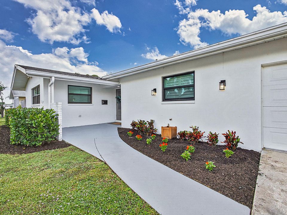 Beautifully remodeled home with large fenced backyard. Most all windows are impact except the 3 large ones in the rear which have shutters. Stunning white wood soft close kitchen cabinets with white quartzite countertops and stainless steel appliances. Under counter reverse osmosis water filtration. Double ovens. Separate wine/ beverage cooler. Very open, light & bright.