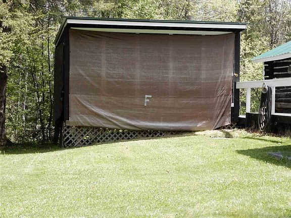 Rustic log cabin on 4.7 acres which includes a screen house, storage shed and one car garage. Property has been well maintained. Sleeping area carved out of living room and kitchen area. Access to crawl space along back. Metal roof-2011; septic is holding tank, last pumped 2016. Electric baseboard heat. Cabin will be sold mostly turn key and AS-IS. Original structure was added onto in 1980's. Hunt off your backyard!