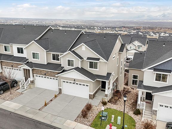 This townhome shows like a model home with stunning views from every window! Quality upgrades that include quartz countertops, LVP flooring, upgraded light fixtures, stainless steel appliances with gas stove, 17 ft vaulted ceilings in the main living room that makes the home feel very spacious as well as lots of windows throughout. Just to. name a few. The above ground basement is completely finished with a walkout, a bedroom, living room and full bathroom. Vinyl fence with a gate is in the process of being installed. The primary suite has vaulted ceilings and a large en-suite bathroom. The night views are amazing with the beautiful city lights. HOA amenities include access to the clubhouse, workout facility, pool and more! Conveniently located to hiking/biking trails, Mountain View Village, restaurants and the newly built U of U Herriman campus. Providence High School and more. Seller will need possession until June 1st 2024.