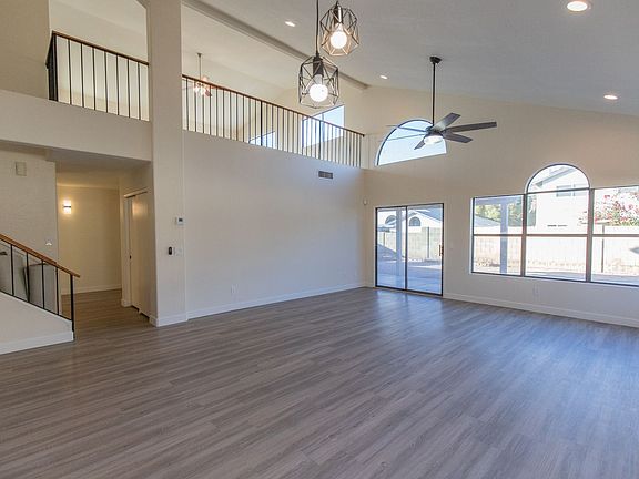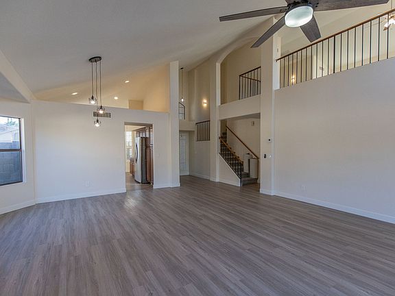 This beautifully updated two-story home offers an inviting layout with soaring ceilings, fresh neutral paint, new flooring, and an abundance of natural light throughout. The open living and dining area provides plenty of space for entertaining or relaxing. The kitchen features stainless steel appliances and a cozy eat-in nook, perfect for casual dining. Convenient main-level amenities include a laundry room, powder bath, and a primary suite complete with a large ensuite bathroom, dual sinks, and a walk-in closet. Upstairs, a generous loft with a fireplace creates the ideal bonus room or second living space, accompanied by two spacious guest bedrooms and a full guest bath. The backyard features a massive extended patio, perfect for hosting and entertaining.