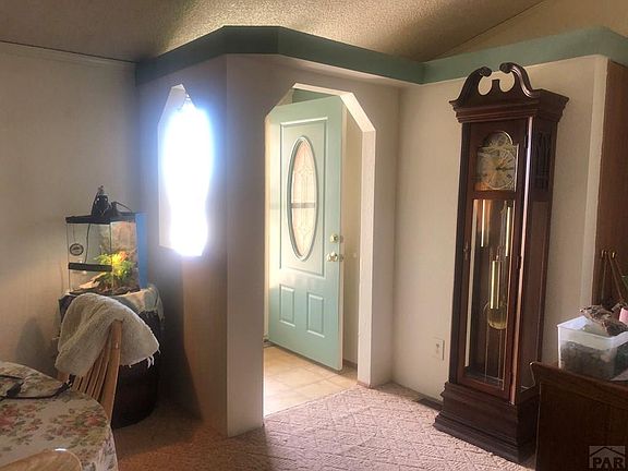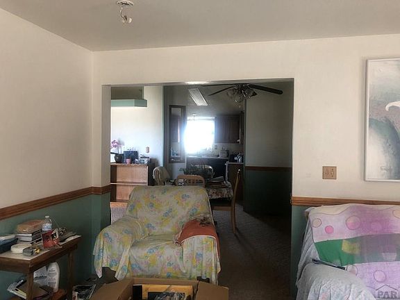 40 acres fenced with 360 views of Spanish peak, Wet Mounts to Pikes Peak. Stucco exterior manufactured home with sheet rocked interior walls, poured concrete foundation, Pellet Stove, vinyl windows, 3 bedrooms, 2 Full bathrooms. Central air, front of home fenced, security light, backyard gazebo on cement patio, Storage sheds and outbuildings. Big 70 x 30 Detached garage, with 100A service and 220V connections, 5 bays (1 bay workshop). Leased propane tank and leased Solar. This property must be sold in conjunction with 46660 Fields Rd. Makes it a total of 80n acres Zoned A-1 check with your agent for uses.