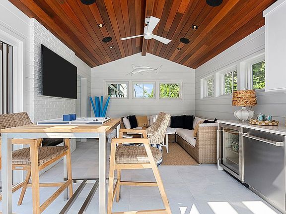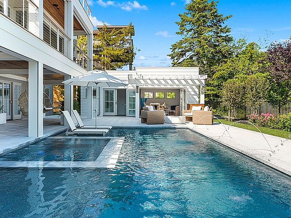 Enjoy the absolute best of contemporary beachside living in this exquisite designer compound with a swimming pool and cabana on an oversized lot in renowned Avalon, New Jersey. Brought to you by esteemed Winfield Developers, Mark Asher Architects and designer Megan Gorelick, the 7,750-square-foot residence is a quietly elegant, modern retreat. Constructed of glass and cedar, the home takes inspiration from the gently rolling dunes and ocean waves. Inside, engineered white oak floors, walls of glass and soaring ceilings underscore the airy ambiance and indoor-outdoor appeal. Custom millwork, Phillip Jeffries wallpaper and chic stone and tile highlight the bespoke craftsmanship and relaxed modern design scheme. The main-floor great room opens entirely to the surrounding 2,300-square-foot marble patio where you'll enjoy al fresco dining and entertaining on under mahogany ceilings. Take a dip in the shimmering swimming pool and hot tub or relax on the expansive sun deck. Lush landscaping and fencing borders the outdoor wonderland. The fully loaded 450-square-foot cabana offers a seating area with a fireplace and 70-inch television, a full bathroom, and a kitchenette with a dishwasher and beverage center. Ascend to the main residence's upper level via a breathtaking glass staircase to find the peerless open kitchen. Hargest custom cabinets and quartzite countertops surround an army of upscale appliances, including two Sub-Zero refrigerators, three dishwashers, and a 48-inch Wolf range with six burners, a griddle and double ovens. Enjoy cooking in the main kitchen with a retractable 15-foot glass window that opens to the adjacent deck's bar seating or utilize the separate prep kitchen which is equipped with a speed oven and massive wine refrigerator. The wraparound deck includes a full summer kitchen and extends around the second-floor dining room and living room. Inside, a two-sided stone fireplace leads to a bright corner den with a fully-stocked wet bar. Impeccable accommodations are found throughout the home and include lovely bedroom suites with custom closets and beautifully appointed en suite baths, plus a delightful bunkhouse bedroom outfitted with four beds. The lavish owner's suite sits on the third floor alongside a private office and features a spa-inspired en suite bathroom, walk-in closet and a balcony with wide-open ocean views. This home's endless conveniences include a paneled home gym equipped with a Peloton Bike, treadmill and storage. The huge laundry room boasts custom cabinetry, herringbone floors and two set of stacked Whirlpool washers and dryers. Smart home features include Lutron blinds, automatic screens and storm shutters, and a fantastic A/V package with integrated speakers inside and out. Stunning landscaping welcomes you home while a wide motor court and attached two-car garage provide abundant parking. This exceptional residence offers unparalleled privacy along with direct access to the Avalon beach path with Avalon shopping, dining and nightlife nearby. There is no other property available on seven mile island that can rival the lifestyle of luxury that 4369 Dune Drive provides.