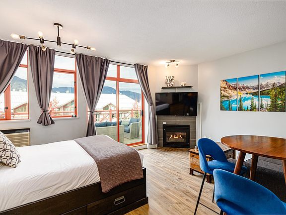 The perfect Whistler getaway with solid investment potential! This bright Alpenglow studio is in the heart of the Village—steps to shops, restaurants, and the gondolas. The desirable corner layout makes the space feel bright and open, with a large private deck offering stunning mountain views. Features include air conditioning, a cozy gas fireplace, a full kitchen, and an owner's storage closet. Enjoy resort-style amenities including a heated outdoor pool, hot tub, sauna, gym, ski/bike storage, shared laundry, and secure underground parking. Alpenglow stands out from most Phase 2 properties with its unique flexibility—owners can choose to manage their own nightly rentals on Airbnb for higher returns, or let the front desk take care of everything for a completely hands-off experience.