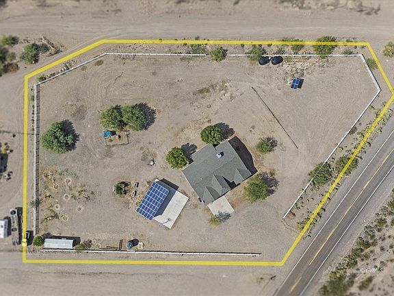 Back porch + Amazing view + Homestead = LOVE: Manage your property sustainably and live a self-sufficient lifestyle on your, just under 2 acre, homestead. Property comes equip with TWO wells. Well #1 (Shared) has a completed water filtration system (currently in operatable) that was installed by a licensed plumbing company that runs to the home, alongside a water storage tank in case any issues arise, you won't be without water. Well #2 is a solar well (Private) that if chosen to be used, is hooked up to the main water line as well. Inside the home is a nice open floor plan featuring stained concrete flooring, a living area with a built-in entertainment center, dual fans, a bright kitchen with a convenient pass-through window, alongside breakfast bar seating. Step outside to enjoy peaceful desert views and a grand sunset show nightly, from your elongated covered patio. Property is fully fenced. The 648sqft workshop includes dual roll up doors, power, and rooftop solar that is paid in full. Extended concrete makes for great parking or fun basketball games. Conveniently located off of a paved road. A house this size, with this lot, and solar and shop for this great price!!... definitely a HARD FIND! It's going to go fast!