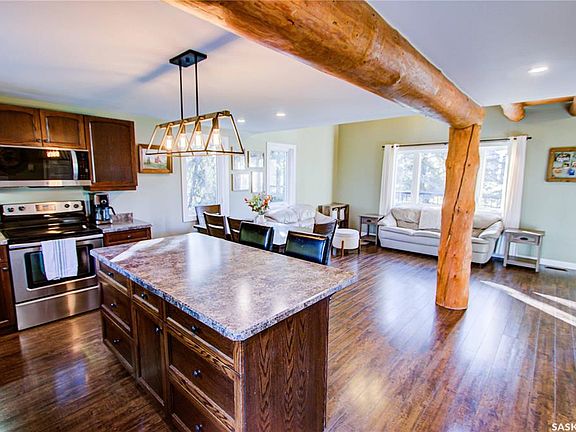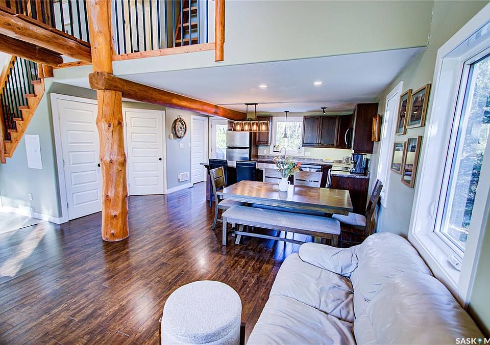 Check out this 5 Beds | 3 Baths + Roughed-in 4th Bath | 1,850+ Sq Ft | Oversized Heated Garage Welcome home to the quaint village of Beatty, a friendly farming community nestled along Hwy 3, just minutes from the city of Melfort and its schools, services, and amenities. This beautiful property offers the perfect blend of small-town charm and modern comfort, boasting over 1,850 sq ft of living space plus a fully finished basement. Originally built in 2012, this home was moved onto a new ICF basement in 2017 and extensively updated, with another major addition in 2022. The addition features an oversized primary bedroom with ensuite, a large laundry/craft room, an additional spacious bedroom, and a massive 2-car heated garage with 9’ overhead door and plenty of extra storage. Step inside and be welcomed by stunning log beams and pillars, a vaulted open-concept layout, and a suspended walkway leading to a south-facing balcony. Enjoy family BBQs on the 300 sq ft deck off the kitchen overlooking a private backyard framed by mature trees and bush. The fully developed basement adds approximately 700 sq ft of extra living space and includes a roughed-in 4th bathroom. Additional highlights include: In-floor heat in basement and main bath -- South-facing balcony for natural light -- Quiet dead-end street with minimal traffic -- Village water, sewer & garbage service -- Great highway access to Melfort, Kinistino & St. Brieux -- Option to purchase adjacent .4-acre lot from the Village of Beatty This is a one-of-a-kind home with rustic character and modern upgrades—ideal for families looking for more space and tranquility without giving up convenience.