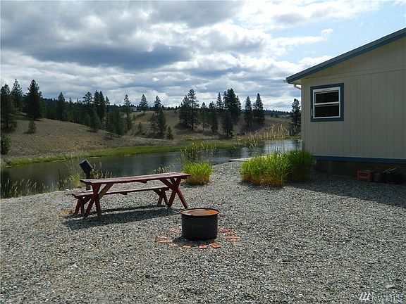 Lakefront! on Long Lake in Aeneas Valley, nicely secluded very clean and crisp home. Approx 45 foot long concrete patio facing the lake. Fishing or bird watching from the edge of your own property. RV parking space for visiting family or friends. Very well kept home with upgraded heat pump and a/c. Shop space with concrete floor. Less than 5 miles off highway 20 in Aeneas Valley.