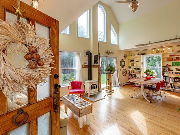 You will fall in love with this beautifully crafted home offering 200' of frontage on Nequasset Bay in desirable Woolwich, Maine. Thoughtfully designed with custom finishes throughout, you'll appreciate the warm hardwood floors, built-ins, clawfoot tub, charming accents and tranquil seasonal water views. A dramatic cathedral ceiling floods the open-concept living space with natural light and passive solar warmth. Enjoy easy one-level living with a first-floor bedroom and large full bathroom, while the spacious finished loft offers flexible space that could easily serve as a second bedroom, office or studio. Set on a quiet, private 1.2± acre lot filled with perennials, this property invites you to relax, garden, or launch your next waterfront adventure along the bay. Additional highlights include convenient walk-out basement access and a location that puts you just minutes from Bath and an easy drive to Boothbay, Wiscasset and some of Maine's finest beaches, including Reid State Park and Popham Beach.