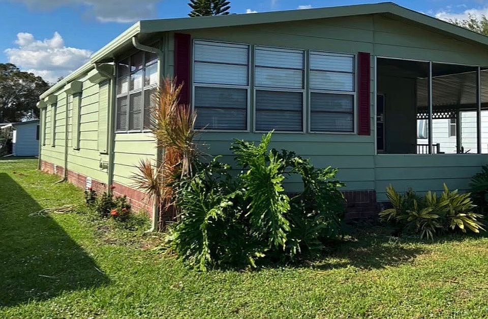 2-bedroom, 2-bathroom manufactured home in a quiet and friendly 55+ community, Palm Lake Estates. Remodeled kitchen with new stove and refrigerator and dishwasher. Both bathrooms remodeled. New roof. Replaced all sub-flooring and flooring throughout. Washer & dryer included. Additional enclosed porch we use as an office. Large storage shed with workbench. Really nice neighbors. Beautiful community pool and clubhouse. Many activities and social gatherings. Lot rent $710 per month. Includes access to all the amenities this community has to offer. Must be park approved.