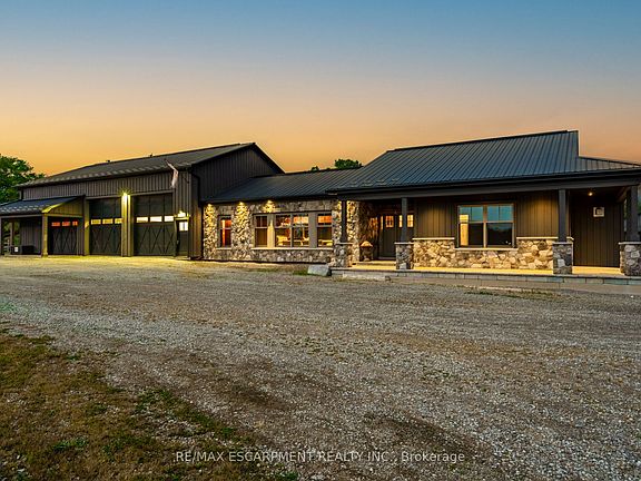 Rare Offering in Flamborough 96 Acres. Welcome to 437 Concession Road East, a legacy estate that blends historic charm, modern luxury, and exceptional potential. The original 1893 farmhouse offers approx 2,162 sq. ft. of timeless character, while the custom ranch-style bungalow, built in 2015, spans over 5,600 sq. ft. of open-concept living with soaring ceilings and a two-storey garage with loft. A 3,556 sq. ft. workshop provides unmatched space for trades, hobbies, or storage. Adding to its uniqueness, the property features a saloon straight out of a country western film perfect for unforgettable gatherings, private celebrations, or simply enjoying the charm of old-world character. The property includes 10 acres of manicured grounds, while the remaining acreage is zoned A-1 with P-7 and P-8 designations. A winding driveway leads to this private retreat, offering peace, privacy, and endless possibilities just minutes from Burlington, Waterdown, and major highways. This is more than a property its a lifestyle. From quiet morning walks to wide-open space where you can run free, create, entertain, or simply breathe, 437 Concession Road East invites you to experience country living without compromise. Rarely does an estate of this scale, beauty, and multi-use opportunity come to market. Luxury Certified.