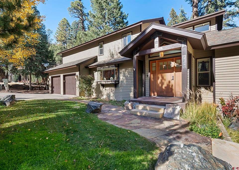 Welcome to Rockwood! Experience the perfect blend of mountain style and Colorado adventure in Rockwood Estates, one of Durango’s most sought-after communities. Ideally positioned between Downtown Durango and Purgatory Resort—and neighboring the prestigious Glacier Club—this immaculate 4-bedroom, 4-bath home offers comfort, privacy, and exceptional versatility. Two primary suites, one on each level, make it ideal for guests or multigenerational living. Step inside to a bright, open layout filled with warmth. The thoughtfully designed kitchen features granite countertops, soft-close drawers, stainless steel appliances, ample counter space, and a comfortable breakfast bar. It flows seamlessly into the cozy family room and dining area, where large windows frame peaceful wooded views and a seasonal stream visible from the expansive deck surrounded by towering pines. The main-level primary suite includes a double vanity and direct deck access. A vaulted living room with a fireplace provides a second inviting gathering space. Upstairs, you will find three bedrooms, including an oversized second primary suite complete with a jetted tub, dual vanities, and tranquil wooded views. Custom details throughout—handcrafted metal railings and unique metal mirrors in each bathroom, add character and mountain charm. A two-car attached garage offers plenty of space for vehicles and Colorado adventure gear. Whether you're seeking a year-round residence, a vacation retreat, or a property with potential to build your dream home, this Rockwood Estates haven offers it all: luxury, location, and an unbeatable mountain lifestyle. There are two adjacent lots available for separate purchase along with this property.