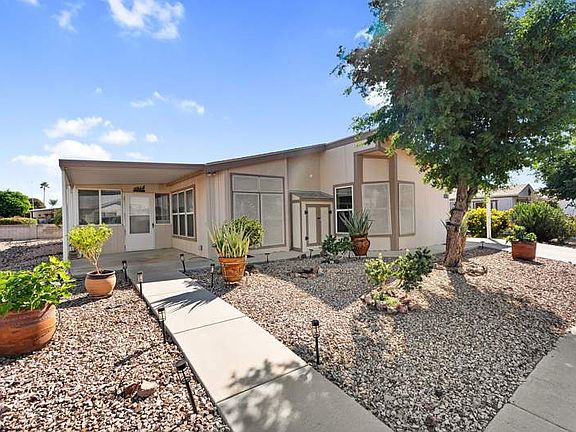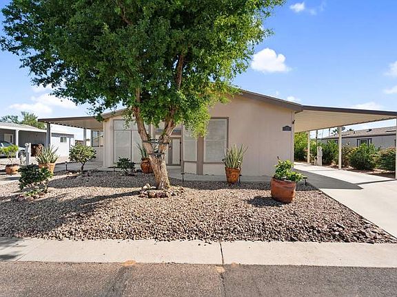 8 Months FREE RENT! This 1680 square foot manufactured home in the Cimarron Crossing community of San Tan Valley, AZ was built in 2006 by Fleetwood. The spacious layout includes 3 bedrooms and 2 bathrooms, with a large living room, dining room, and kitchen. The master bedroom features an en-suite bathroom and a walk-in closet, providing ample storage. Additional interior features and appliances include an oven, fridge, dishwasher, microwave, garbage disposal, washer, dryer, hot water heater, and central A/C for comfortable living year-round. Outside, the home features a carport, a shed, and an enclosed porch for outdoor relaxation.Cimarron Crossing is a welcoming community in San Tan Valley, AZ, offering residents a range of amenities, including a clubhouse, swimming pool, and fitness center. The community is conveniently located near shops, restaurants, and entertainment, making it easy to enjoy all the area has to offer. With well-maintained grounds and friendly neighbors, Cimarron Crossing is a great place to call home for those seeking a comfortable and convenient lifestyle in the San Tan Valley area.