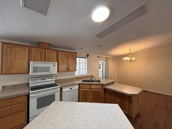 This 1792 square foot manufactured home, built in 2003, offers a spacious living experience with 3 bedrooms and 2 bathrooms. The home features a cozy living room, dining room, and a bonus room that can be used as a home office. The master bedroom includes an en suite bathroom with two walk-in closets for added convenience. The kitchen is equipped with modern appliances including an oven, fridge, dishwasher, microwave, and garbage disposal. Additionally, the home boasts an Arizona room for enjoying the beautiful Arizona sunshine, as well as a laundry room with a washer and dryer included. Exterior features of the home include a carport and a shed for additional storage space.Cimarron Crossing is a charming community located in San Tan Valley, AZ, offering a peaceful and serene environment for residents to enjoy. The community provides amenities such as a clubhouse, swimming pool, and walking trails for outdoor recreation. Residents can also take advantage of the community events and social activities organized throughout the year. With convenient access to shopping, dining, and entertainment options nearby, Cimarron Crossing provides a convenient and comfortable living experience for residents of all ages.