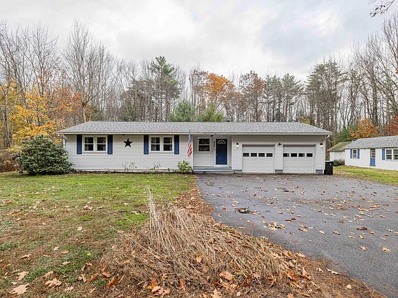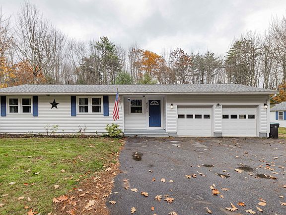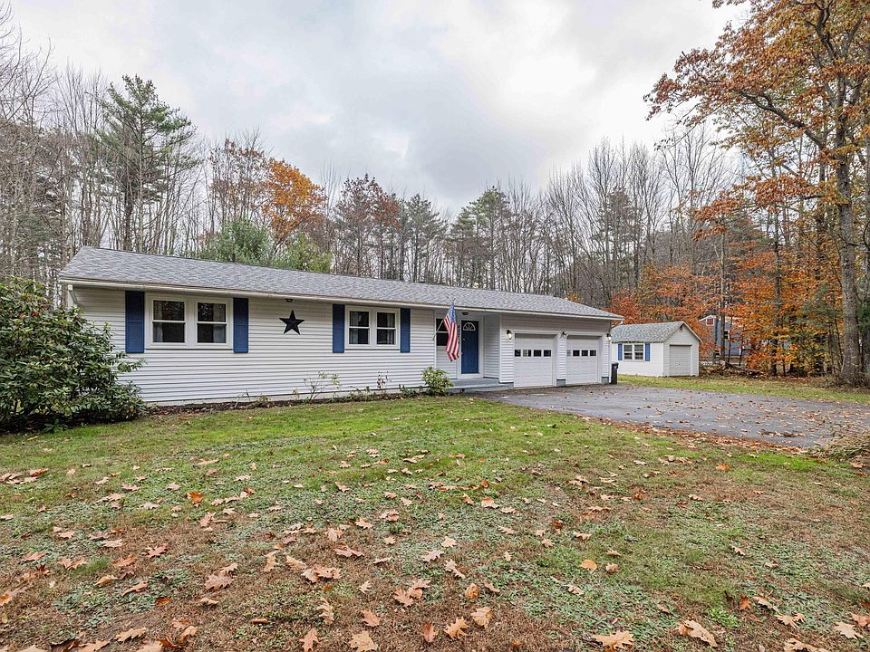 Open concept single level ranch with over 1000 Sqft of living space, 2 spacious bedrooms 1 bath with an attached 2 car garage. Features include an eat-in kitchen, open concept dining room/living room and the primary bedroom has a pair of cedar closets. Enjoy your fire pit, and large private backyard! Large outbuilding has power and offers plenty of storage and workshop. Located less than a ten minute drive from the Maine mall and Gorham.