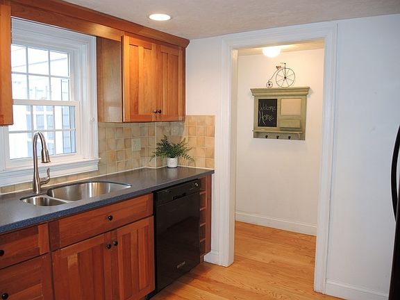 Terrific starter home in Needham! Sited in desirable Birds Hill neighborhood, this three-bedroom, 1.5-bath Colonial is filled with sunlight, inviting spaces, and quaint original details. Hardwoods and recessed lighting open to a generous living room featuring a cozy fireplace and large windows. Custom built, eat-in kitchen features cherry cabinets, a span of countertops, newer appliances, and pantry storage. Gather in the formal dining room detailed with crown molding and corner china cabinet. Attached bright space perfect for office or playroom. Second floor includes a master bedroom with closets, two good-size bedrooms, and an updated full bath. Recently renovated mudroom leads to fully-fenced in backyard that combines outdoor play space with a patio and potting shed. Partially-finished basement provides bonus area and additional storage. One car garage. Easy commuter access to Hersey commuter rail and short distance to Needham Golf Club, Perry Park and Defazio Park.