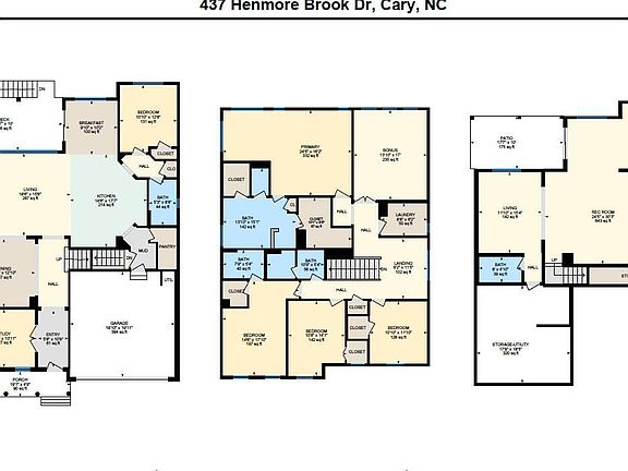 Meticulously maintained single-family home with finished walk-out basement in one of Cary's most accessible locations. Bright and spacious living with top Wake County schools. Built in 2018, this home blends classic charm with modern sophistication. Main level features an open floor plan, hardwood floor, updated cabinetry, a guest suite, private office with French doors, and a mud room. Kitchen includes an oversized island, gas cooktop, and ample cabinet storage, and it flows seamlessly into a light-filled living room with access to a covered porch that overlooks the private backyard - offering plenty of usable space and peaceful pond views. Upstairs, you'll find a private primary suite with a spa-like bath and walk-in closet, a loft, bonus room, and additional bedrooms. Basement features another living room, a massive recreation room, a full bath and additional unfinished area - perfect for flexible use. Part of the rec room can be easily converted to 6th bedroom. Walking distance to groceries, daycare, shops, restaurants, health care, and other neighborhood conveniences. A rare opportunity to enjoy modern living that offers luxury, space and everyday ease.