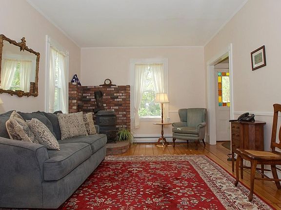 Quintessential antique farmhouse with modern conveniences! As soon as you walk through the original stained glass door you're greeted by beautiful wood flooring that graces every room in the home. Recently updated kitchen and bath with granite countertops and maple cabinetry, and freshly painted walls enhance how the large open rooms flow together wonderfully. Original oak banister curves along the staircase leading to the second level. There you will find 3 generous bedrooms and a fully updated bath with granite top and a tiled shower/tub. At the back of the home you will find a large 3 season porch that leads to an equally sized composite deck with views of the sprawling back yard. Off of the basement and with it's own separate entrance you will find an additional space with a wet bar, fridge and full bath - perfect for a guest, office, man-town or she-cave. Updated windows, heating system, vinyl siding, roof and BRAND NEW 4 bedroom septic make this a must see!!