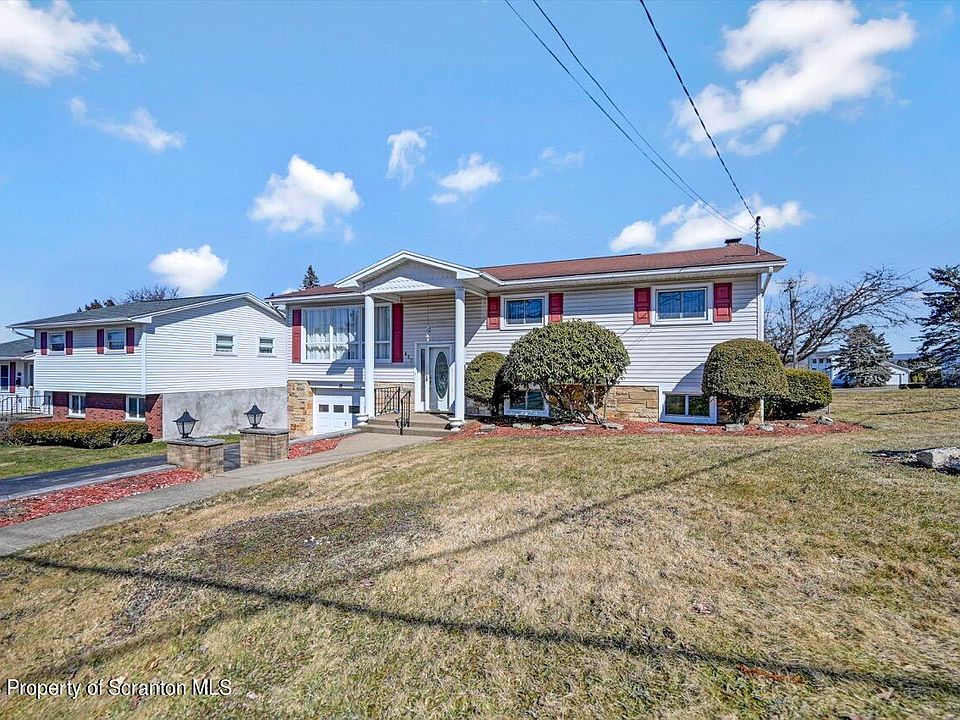 ''HIGHEST AND BEST'' OFFERS TO BE SUBMITTED BY THIS SUNDAY, MARCH 10th AT 8 P.M. Nicely maintained 2 bed, 1.5 bath SWINNICK home with pool. Tucked away in a quiet Dunmore neighborhood, but so close to 81 and all the conveniences, (including the YMCA),that you desire.The first floor features newly refinished wood floors, a living room with lots of windows /great sun light, a formal dining room, textured ceilings, an eat-in kitchen that leads off to the deck, 3 beds, and a full bath. The lower level has a laundry room,a nice-sized family room with a large stone gas fireplace, a wet bar and a 1/2 bath which are steps away from the outdoor pool.Entertaining has never been easier with the pool and the many decks, ( with a built-in swing and benches), that this house has to offer. Nicely landscaped on a corner lot, two brick pillars with lights that take you from the driveway to the front of the home, a fenced-in yard and an attached one car garage completes the package.Needs some updating but this house truly has it all!!! Sold ''As Is'' with buyer having the right to do a home inspection for their own knowledge.