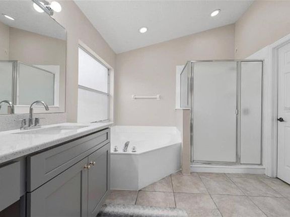This beautiful fully furnished property for rent is near Disney, is available for rent starting September 1st, 2023. House features over 2000 square feet of living space, with 5 bedrooms, 3 full bathrooms, and a large, enclosed lanai with a sparkling pool and jacuzzi. The 2 junior master bedrooms have their own ensuite master bathroom and the 2 two twin bedrooms have a shared bathroom.The house is live-in ready, all you need to do is bring your clothes. Come to see this beautiful and modern house!