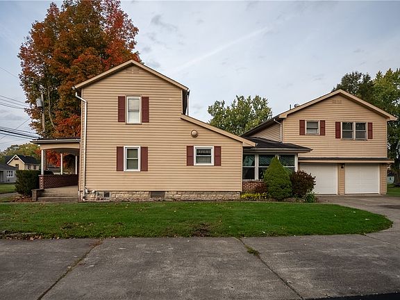 Two separate living spaces are found in this large Sharpsville home. The main house offers 4 bedrooms and 2 baths. Located off the kitchen is a step down family room with patio doors leading to the large enclosed breezeway. There is a full bath on the main level along with the a bedroom, dining room and den with wood burning fireplace. The second floor of the main house has 3 bedrooms and a full bath. A large 29x8 breezeway separates the main house from a 2 car heated garage and a completely separate living space. The apartment is located above the garage with a full kitchen with stove and refrigerator included. There was a complete remodel of this space in 2018. The full bath has a tub/shower. The apartment is cooled with a window AC unit and is heated with a separate gas forced air furnace. The main house has central air. The spacious back yard w/shed has lots of room for outdoor activities. This is a great location and is close to all amenities including Buhl Park.