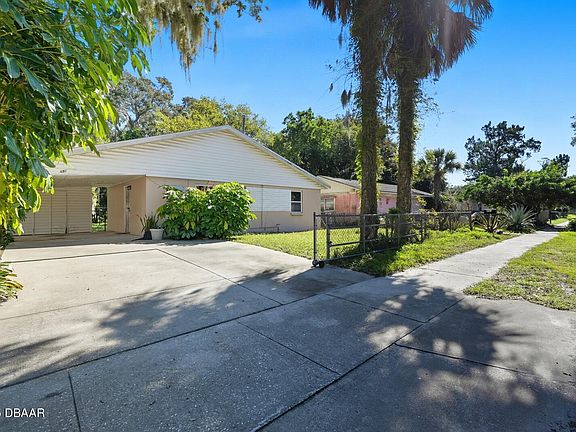 Welcome to 437 Lockhart Street, a charming 2-bedroom, 1-bath home offering 748 square feet of comfortable living space. Inside, you'll find laminate flooring throughout and wood-paneled ceilings that bring warmth and character to each room. The bathroom features gray, wood-look tile walls paired with matching ceiling accents, creating a clean and inviting feel. Outside, enjoy a spacious, fully fenced backyard with plenty of room for outdoor living or gardening, along with a 2-car carport for convenient parking and extra storage. Conveniently located near shopping, restaurants, and the beach, this home blends cozy charm with easy access to everything Daytona Beach has to offer.